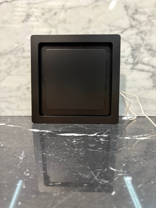 Рамка прикрепляется к стене или полотку при помощи саморезов или клея, а верхняя часть с глухой панелью фиксируется к рамке при помощи неодимовых магнитов.
