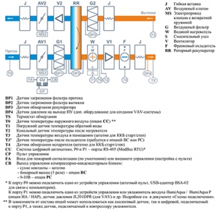 - Возможность управления клапаном смесительного узла калорифера для нагрева воздуха до заданной температуры, защита от замораживания.